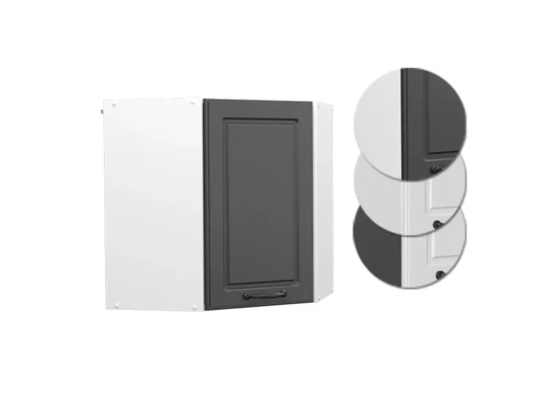 Das Eckregal für die Küche hat Abmessungen: 57 cm, Breite, 60 cm, Höhe, 34,1 cm, Tiefe