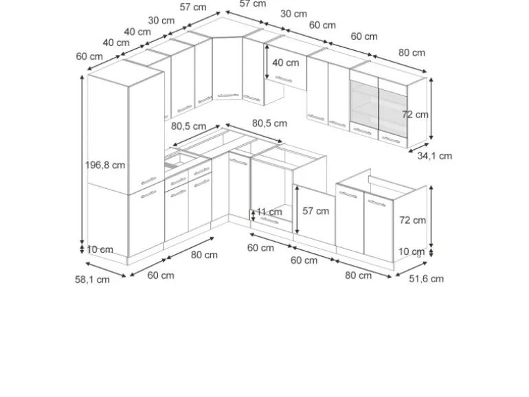 Die Küche L Form hat eine Breite von 227×287 cm, eine Höhe von 82 cm und eine Tiefe von 52 cm
