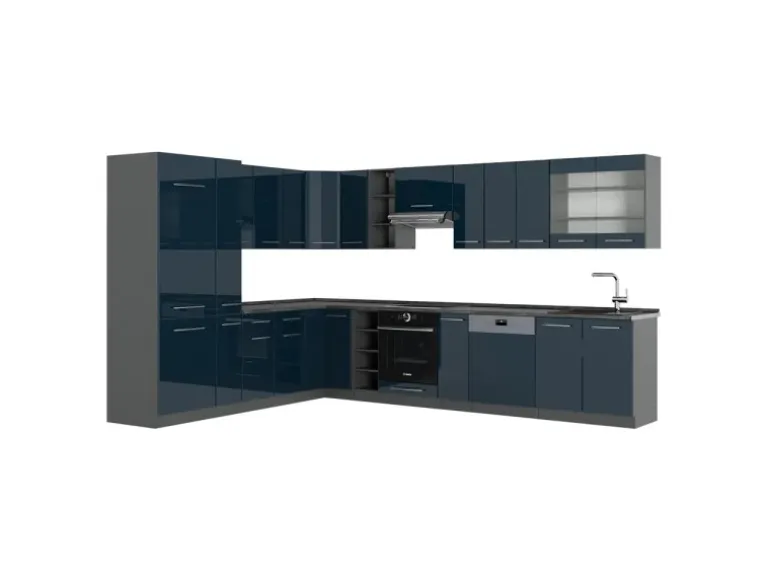 Die Küche L Form hat eine Breite von 257×347 cm, eine Höhe von 82 cm und eine Tiefe von 52 cm