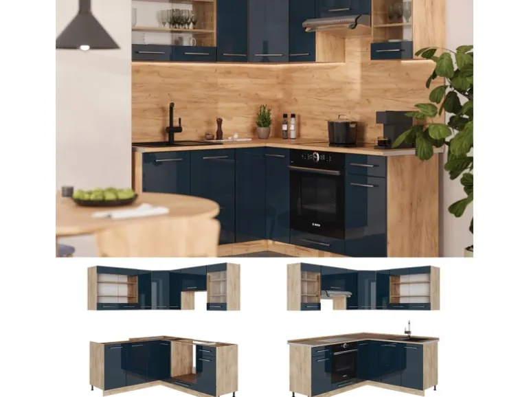 Die Küche in L-Form bietet zusätzliche Module und ein umstellbares Design nach Belieben