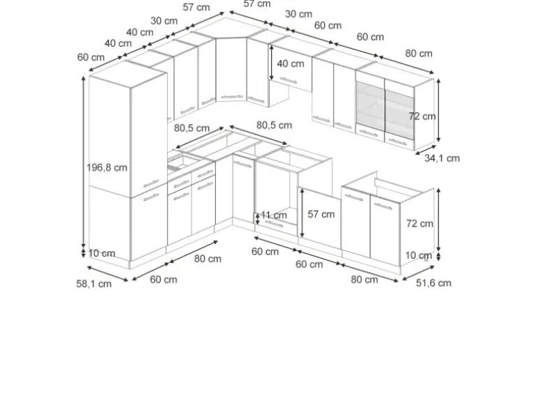 Die Küche in L-Form bietet zusätzliche Module und ein umstellbares Design nach Belieben