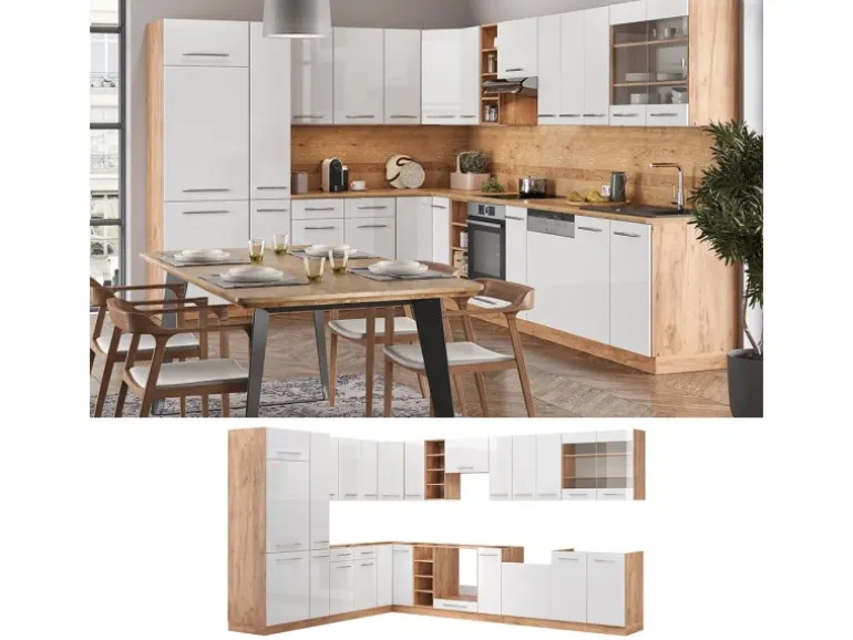 Die Küche in L-Form bietet zusätzliche Module und ein umstellbares Design nach Belieben