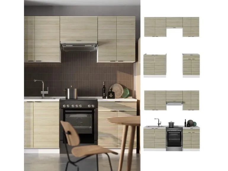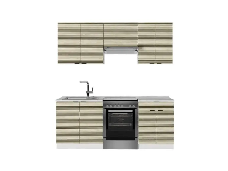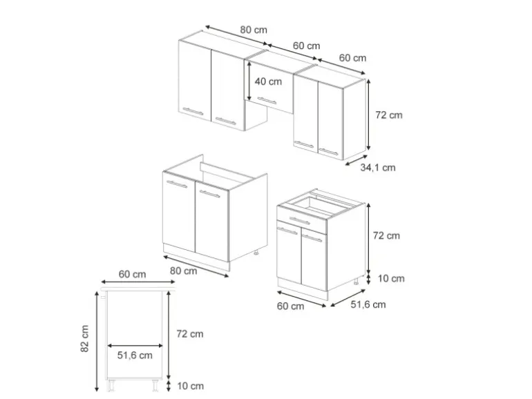 Das Küchenmöbel hat eine Breite von 200 cm, eine Höhe von 82 cm und eine Tiefe von 60 cm