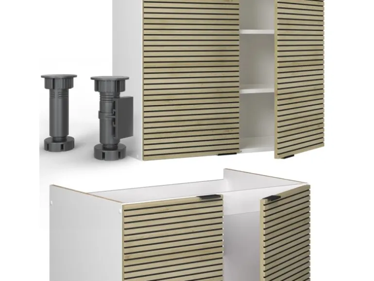 Der Küchenblock besteht aus pflegeleichter Spanplatte 16 mm, mit einer Melaminharzbeschichtung
