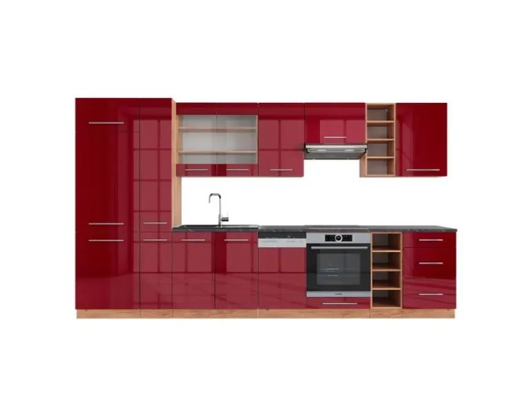 Das Küchenmöbel hat eine Breite von 355 cm, eine Höhe von 82 cm und eine Tiefe von 52 cm