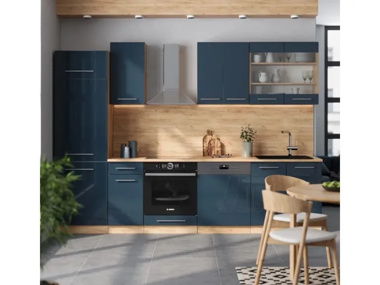Die Einbauküche hat eine Breite von 300 cm, eine Höhe von 82 cm und eine Tiefe von 60 cm