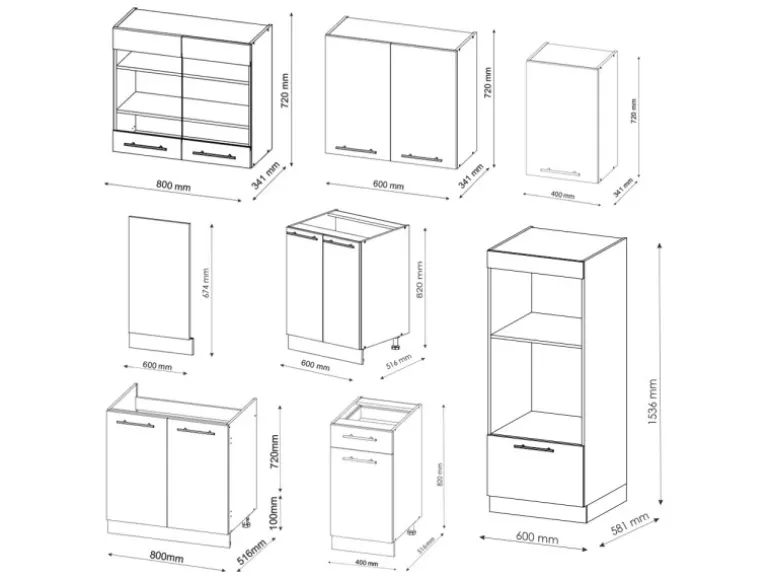 LIEFERUMFANG: Küchenblock ohne Arbeitsplatte, Montagematerial, Montageanleitung