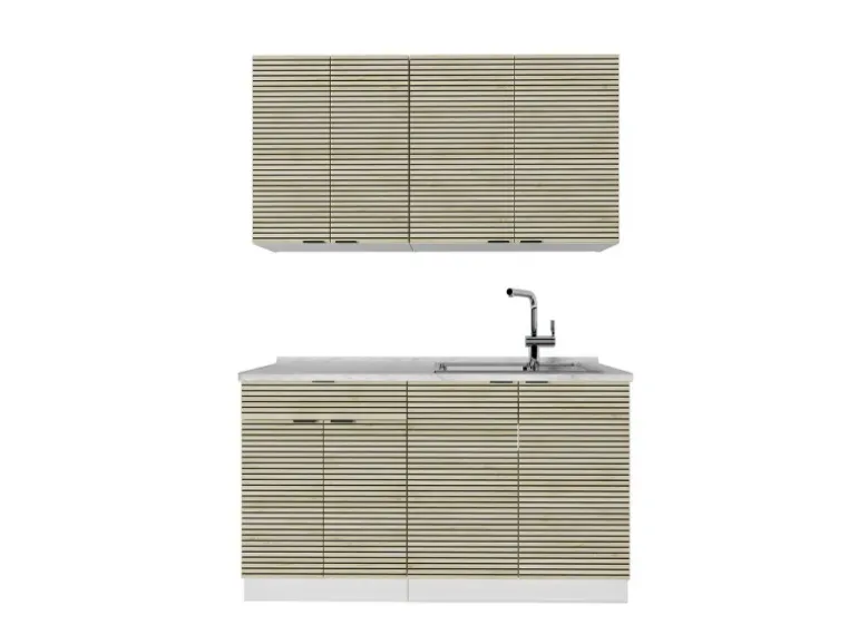 Der Küchenblock besteht aus pflegeleichter Spanplatte 16 mm, mit einer Melaminharzbeschichtung