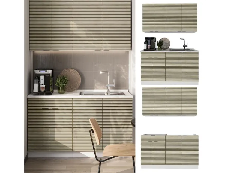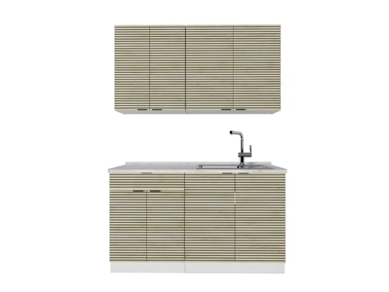 Der Küchenblock besteht aus pflegeleichter Spanplatte 16 mm, mit einer Melaminharzbeschichtung