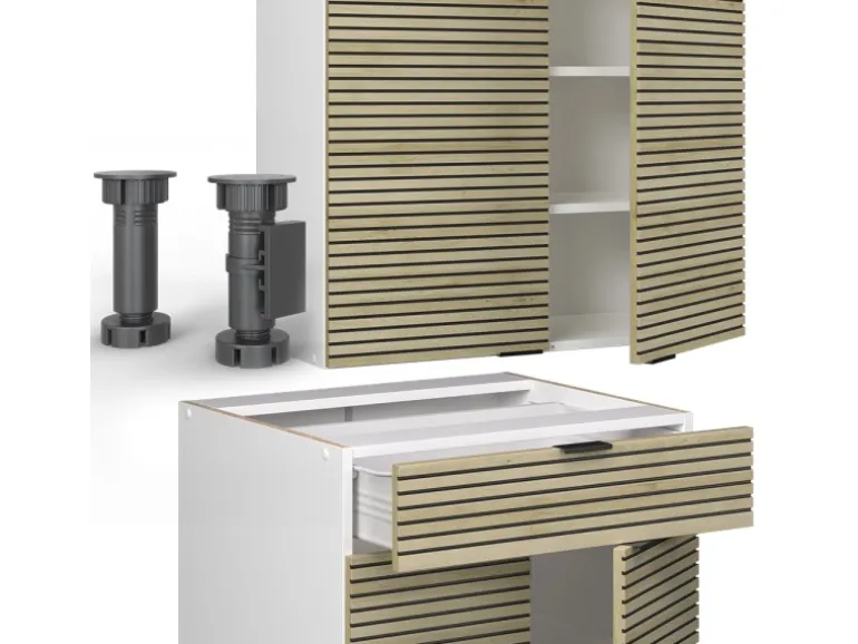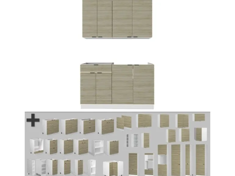 LIEFERUMFANG: Küchenblock ohne Arbeitsplatte, Montagematerial, Montageanleitung