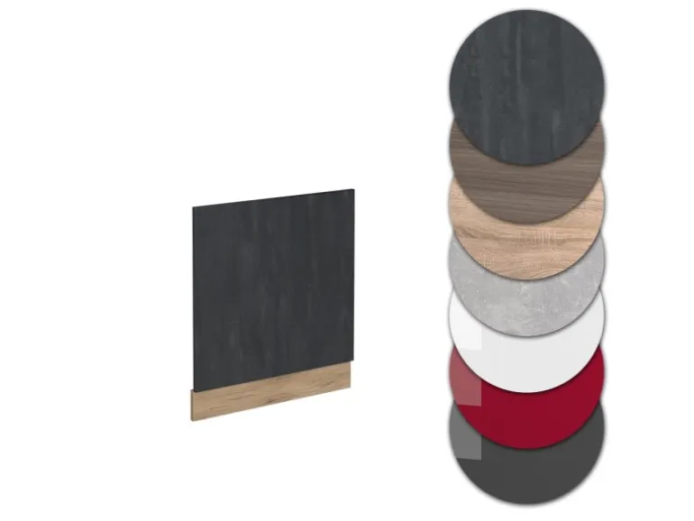 Die Blende besteht aus pflegeleichter, melaminharzbeschichteter 16 mm Spanplatte.