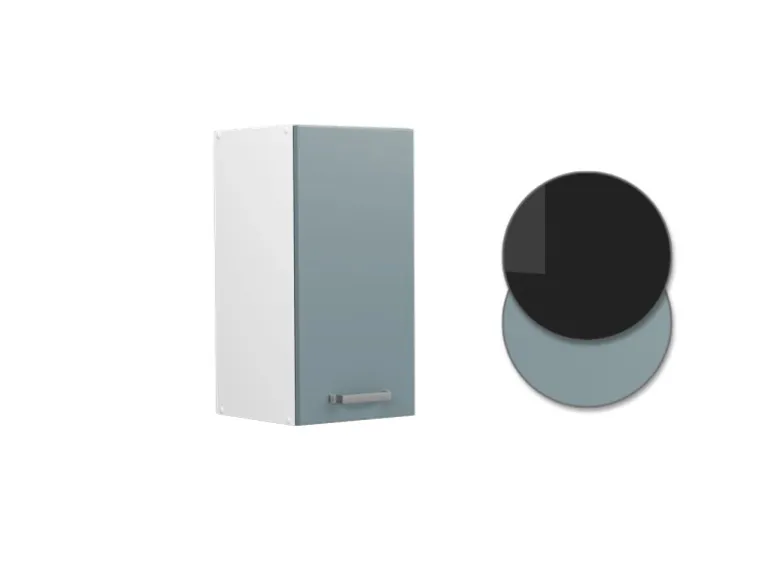 Der Wandschrank besteht aus pflegeleichter, melaminharzbeschichteter 16 mm Spanplatte.