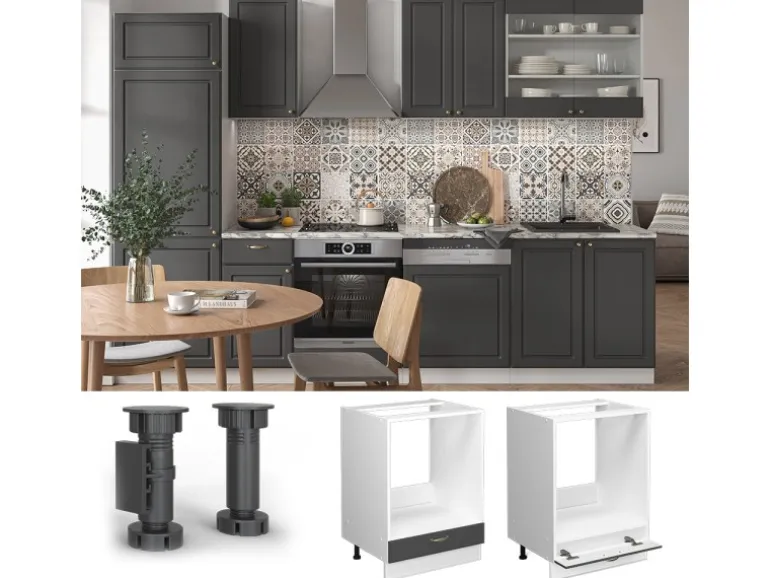 Lieferumfang: Küchenschrank als Bausatz, Montageanleitung, Montagematerial