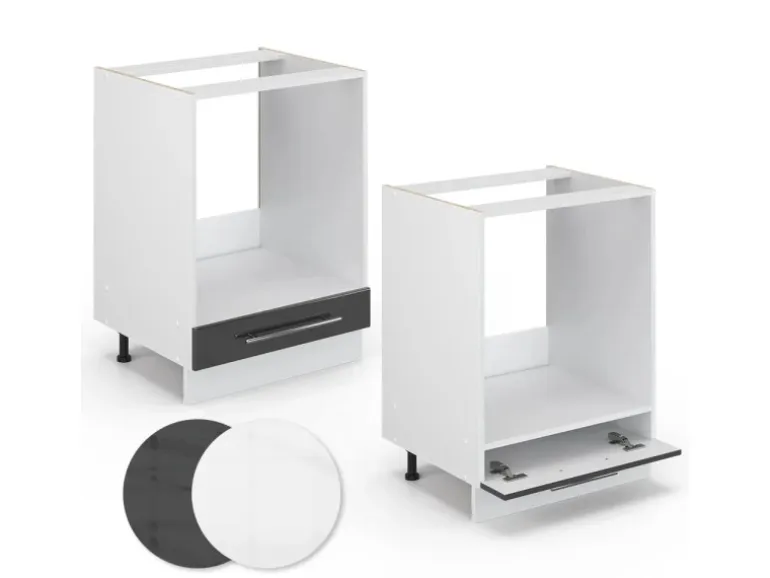 Der Küchenschrank für den Einbauherd hat Breite 60 cm, Höhe 82 cm und Tiefe 60 cm