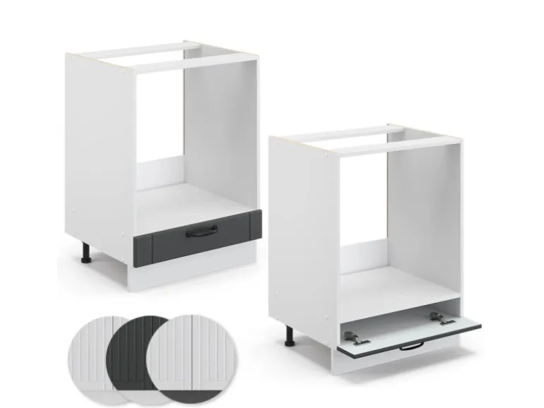 Der Küchenschrank für den Einbauherd hat Breite 60 cm, Höhe 82 cm und Tiefe 60 cm
