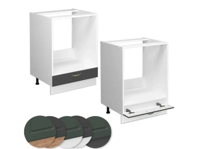 Der Küchenschrank für den Einbauherd hat Breite 60 cm, Höhe 82 cm und Tiefe 60 cm