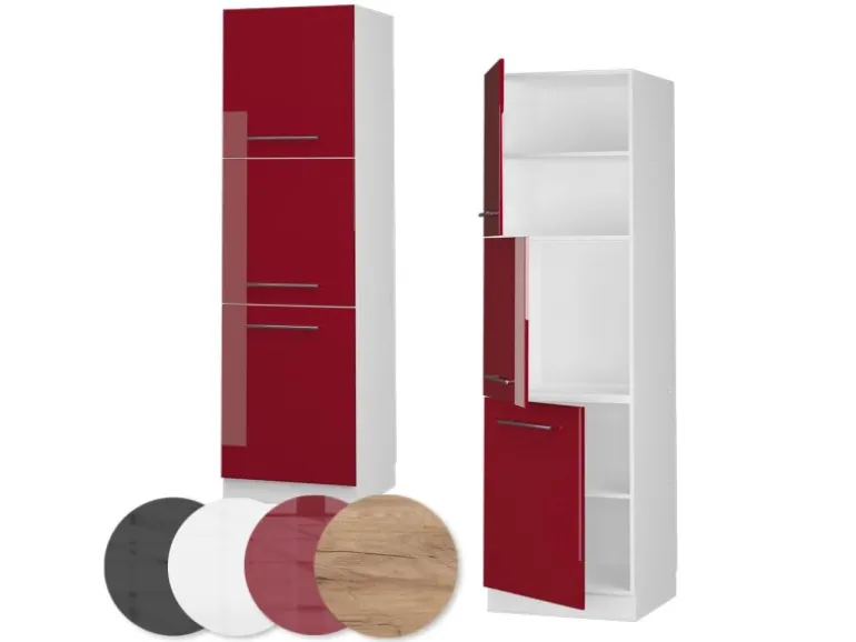 Der Küchenschrank für den Einbauherd hat Breite 60 cm, Höhe 206,8 cm und Tiefe 58 cm
