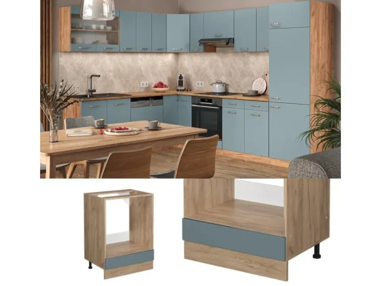 Das Küchenmöbel besteht aus pflegeleichter Spanplatte 16 mm, mit einer Melaminharzbeschichtung