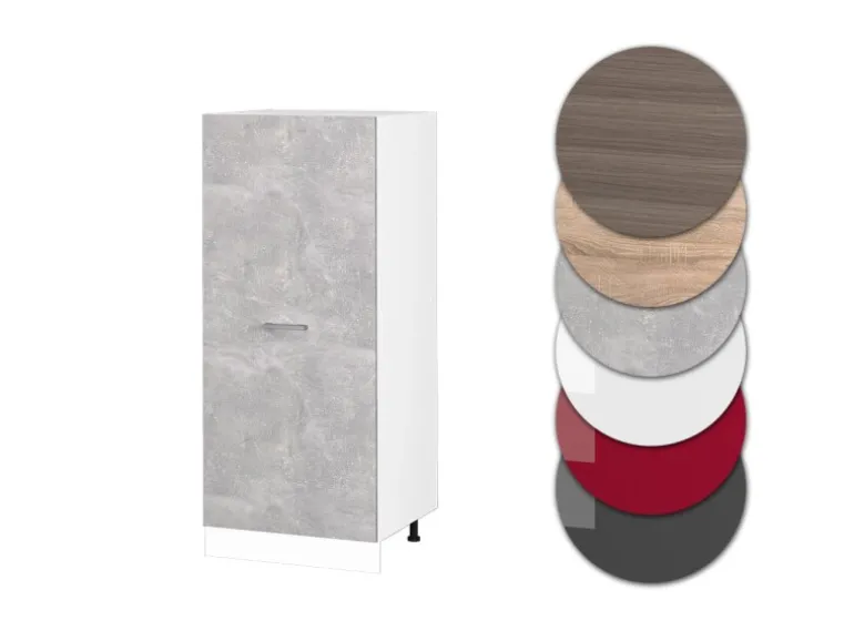Der Küchenhochschrank hat Breite 60 cm, Höhe 143 cm und Tiefe 57,2 cm