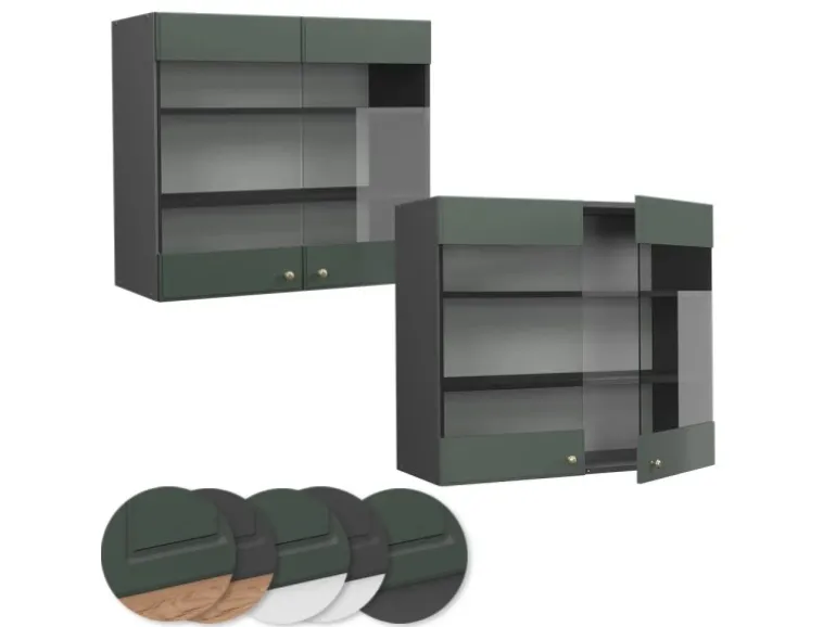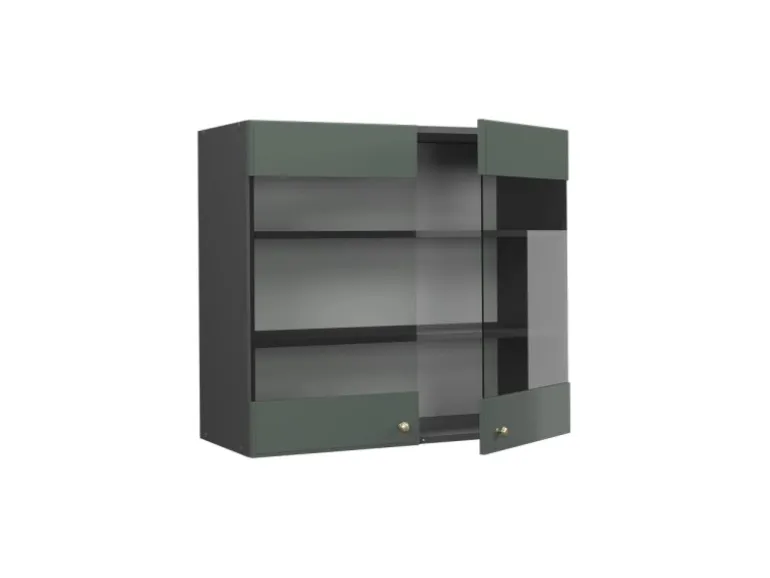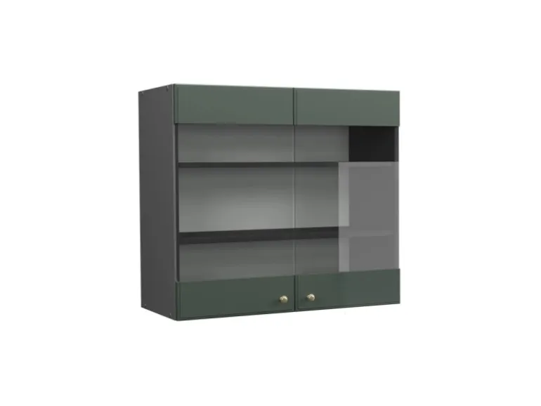 Die Hängevitrine hat Breite 80 cm, Höhe 72 cm und Tiefe 34,1 cm