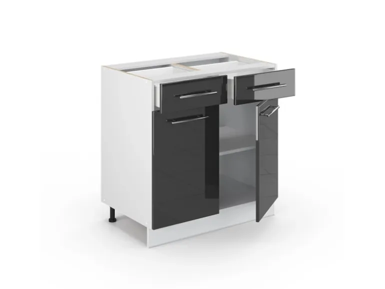 Der Schubladenunterschrank hat Breite 80 cm, Höhe 82 cm und Tiefe 51,6 cm