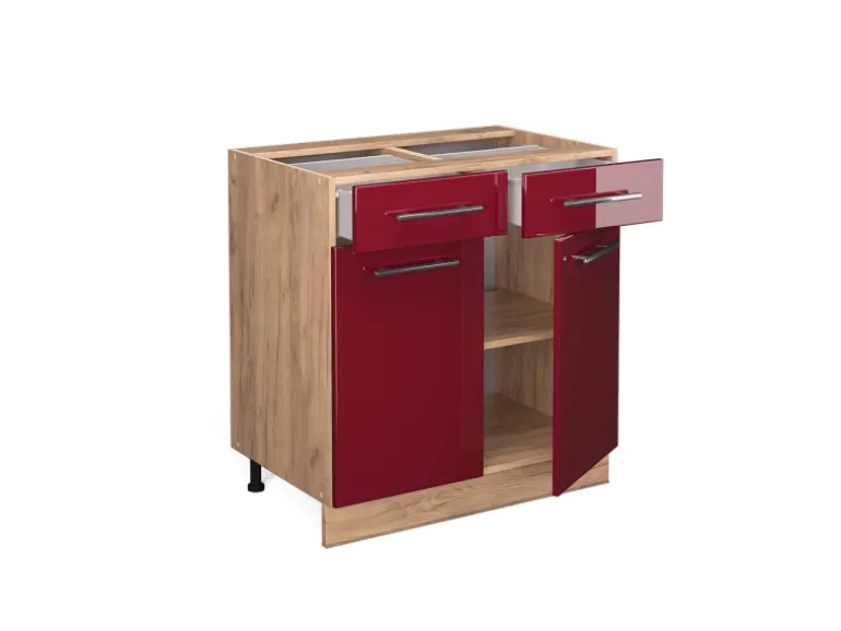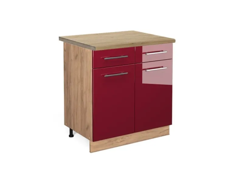 Der Schubladenunterschrank hat Breite 80 cm, Höhe 82 cm und Tiefe 60 cm