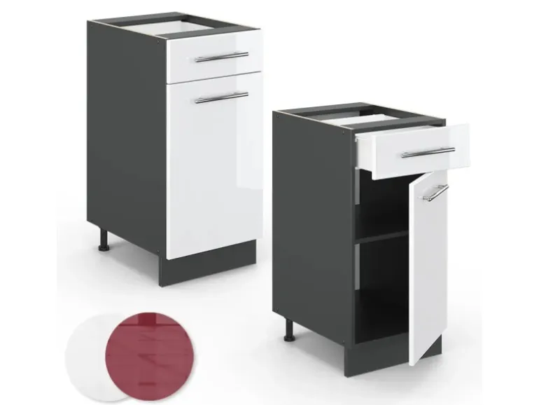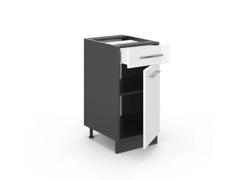 Der Schubladenunterschrank hat Breite 40 cm, Höhe 82 cm und Tiefe 60 cm