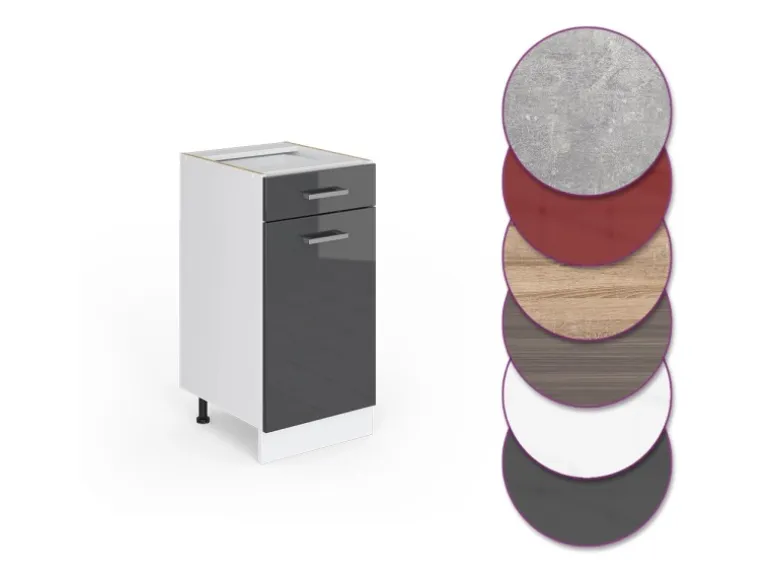 Der Schubladenunterschrank hat Breite 40 cm, Höhe 81,6 cm und Tiefe 46 cm
