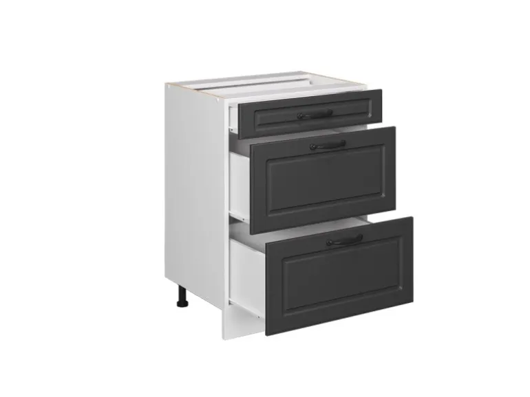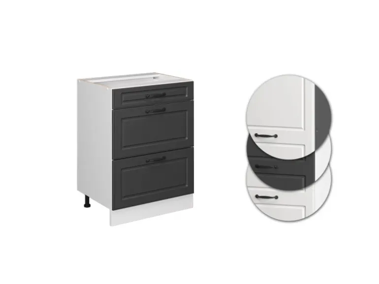 Der Schubladenunterschrank hat Breite 60 cm, Höhe 81,6 cm und Tiefe 46 cm