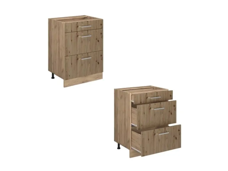 Der Schubladenunterschrank hat Breite 46 cm, Höhe 81,6 cm und Tiefe 46 cm