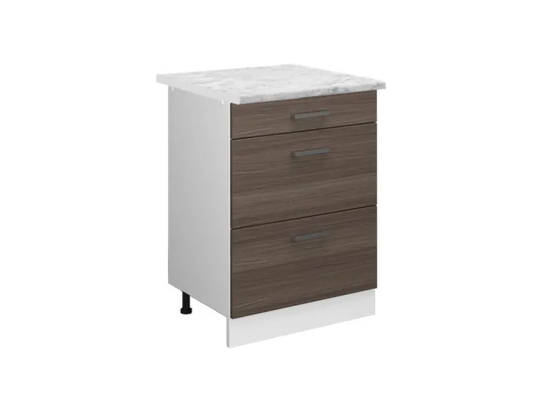 Der Schubladenunterschrank hat Breite 60 cm, Höhe 81,6 cm und Tiefe 60 cm