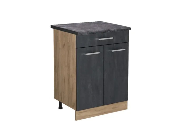 Das Küchenmöbelstück besteht aus pflegeleichter, melaminharzbeschichteter 16 mm Spanplatte.