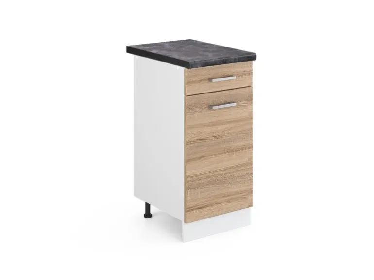 Der Schubladenunterschrank hat Breite 40 cm, Höhe 81,6 cm und Tiefe 60 cm