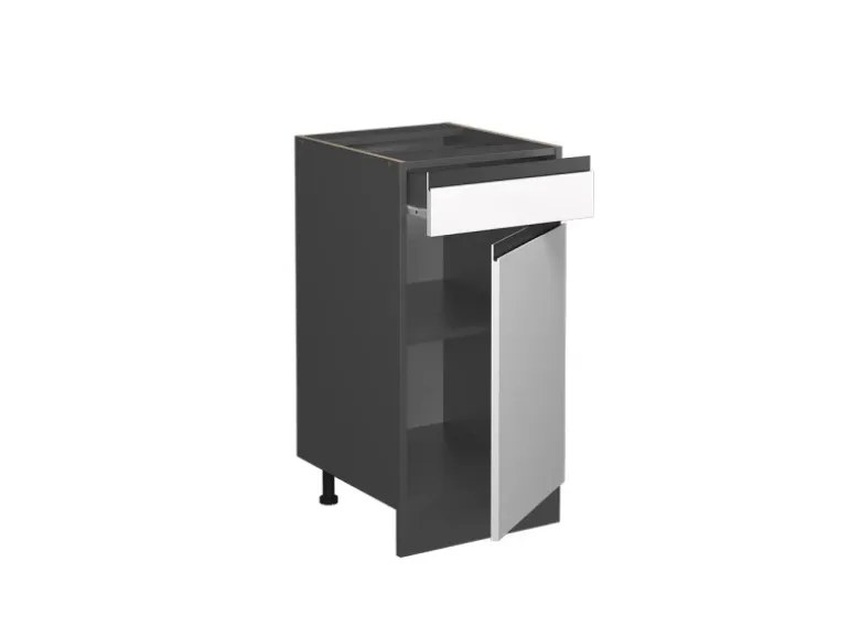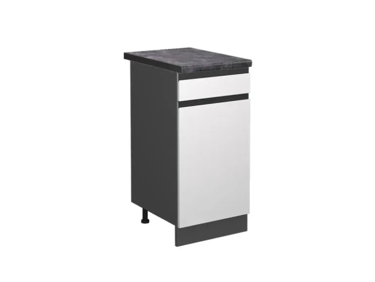 Der Schubladenunterschrank hat Breite 40 cm, Höhe 81,6 cm und Tiefe 60 cm