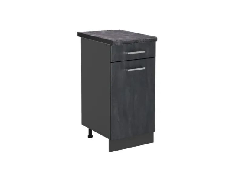 Das Küchenmöbelstück besteht aus pflegeleichter, melaminharzbeschichteter 16 mm Spanplatte.