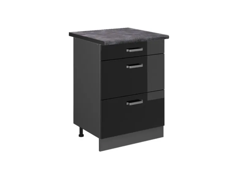 Der Schubladenunterschrank hat Breite 60 cm, Höhe 81,6 cm und Tiefe 60 cm