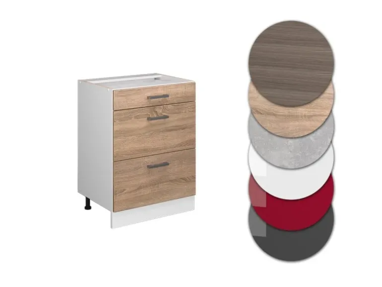 Der Schubladenunterschrank hat Breite 60 cm, Höhe 81,6 cm und Tiefe 46 cm