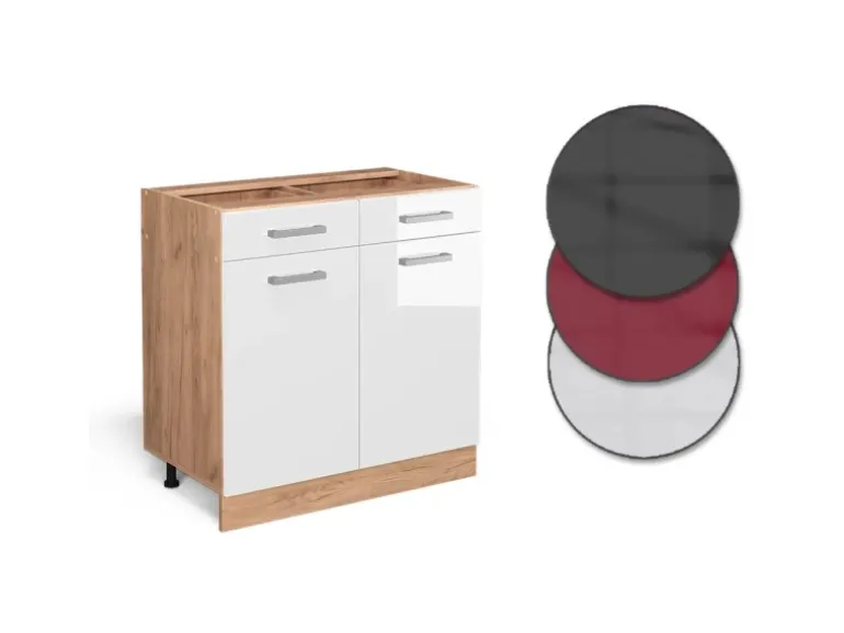 Der Schubladenunterschrank hat Breite 80 cm, Höhe 81,6 cm und Tiefe 46 cm