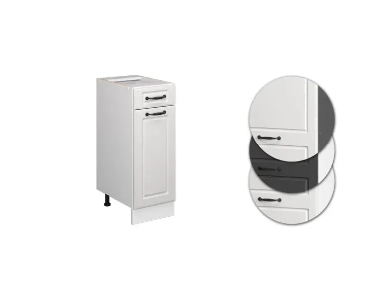 Der Schubladenunterschrank hat Breite 30 cm, Höhe 81,6 cm und Tiefe 46 cm