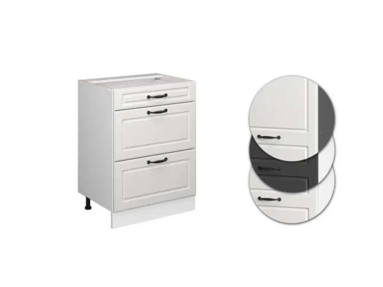 Der Schubladenunterschrank hat Breite 60 cm, Höhe 81,6 cm und Tiefe 46 cm