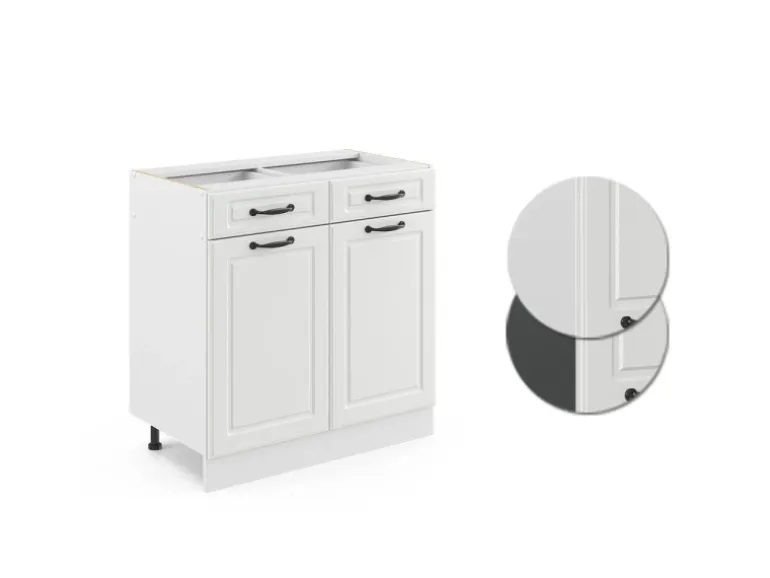 Der Schubladenunterschrank hat Breite 80 cm, Höhe 81,6 cm und Tiefe 46 cm