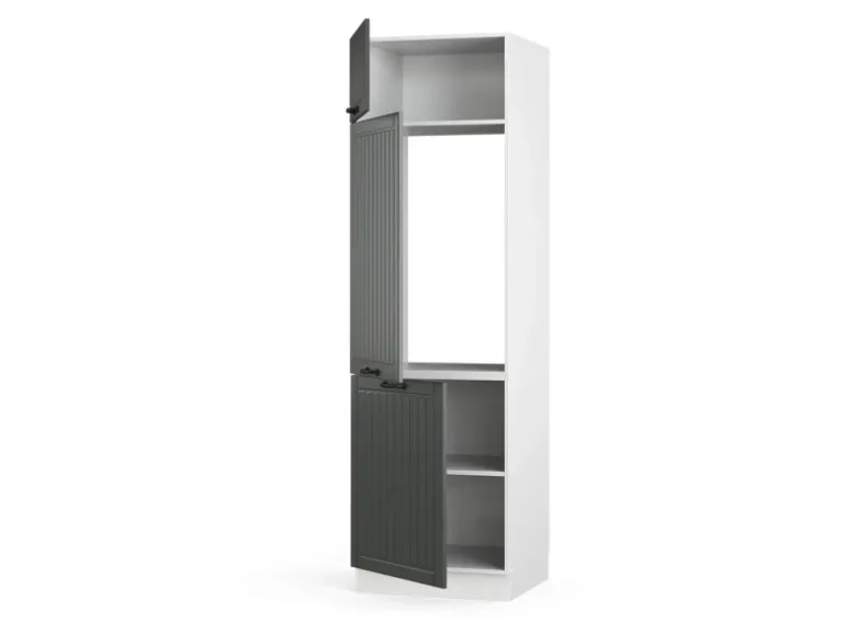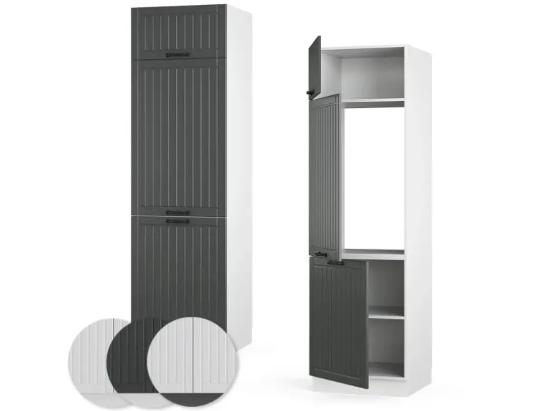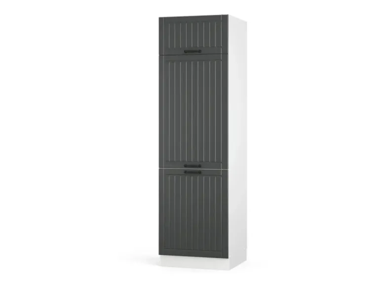 Der Küchenschrank für den Kühlschrank hat Breite 60 cm, Höhe 206,8 cm und Tiefe 58 cm