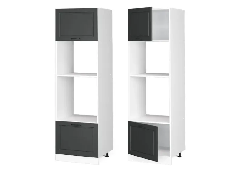 Der Küchenschrank für die Mikrowelle hat Breite 60 cm, Höhe 207 cm und Tiefe 57,2 cm