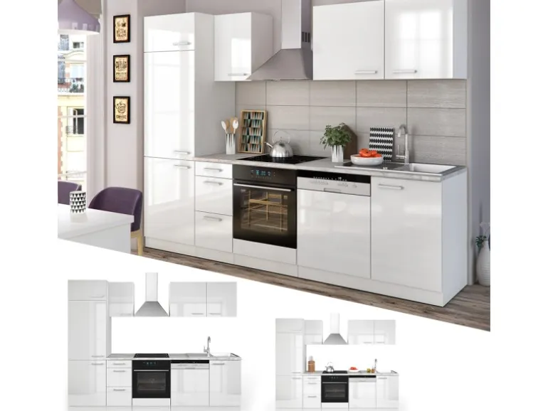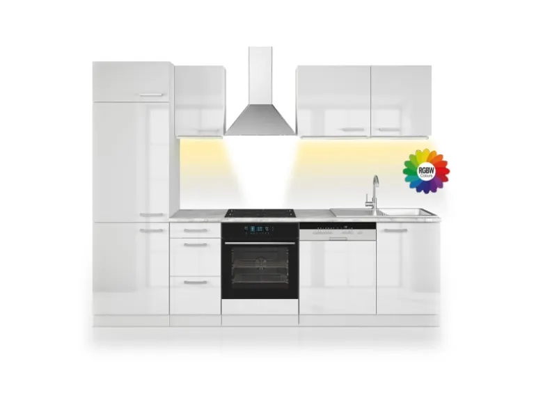LIEFERUMFANG: Küchenblock ohne Arbeitsplatte, LED-Leisten, Montagematerial, Montageanleitung.