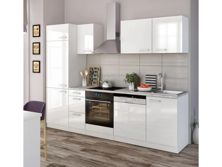 Das Küchenmöbel hat eine Breite von 270 cm, eine Höhe von 85 cm und eine Tiefe von 60 cm