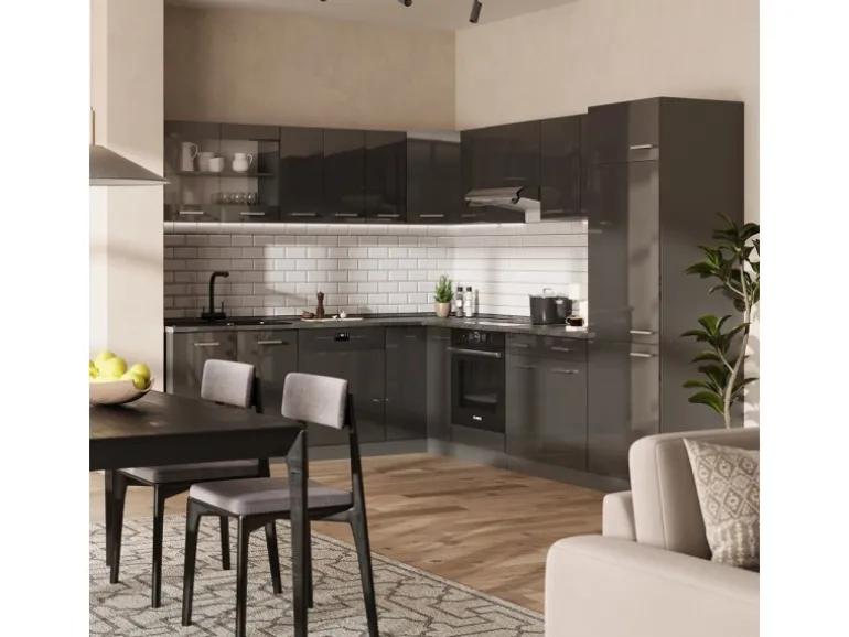 Die Küche in L-Form bietet zusätzliche Module und ein umstellbares Design nach Belieben