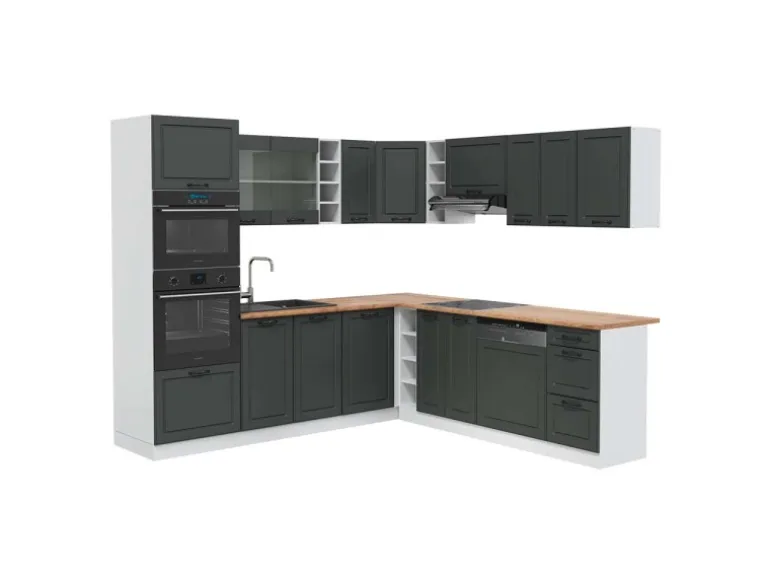 Die Küche in L-Form bietet zusätzliche Module und ein umstellbares Design nach Belieben