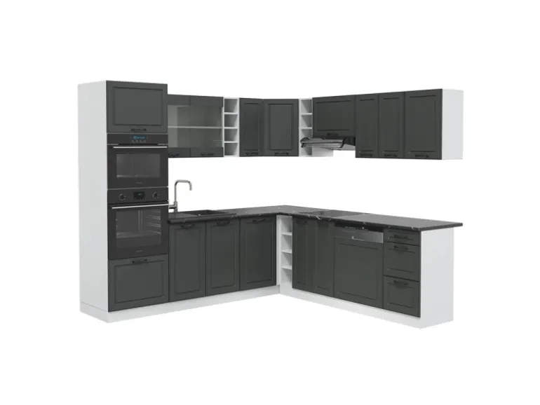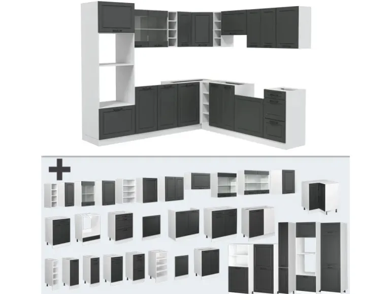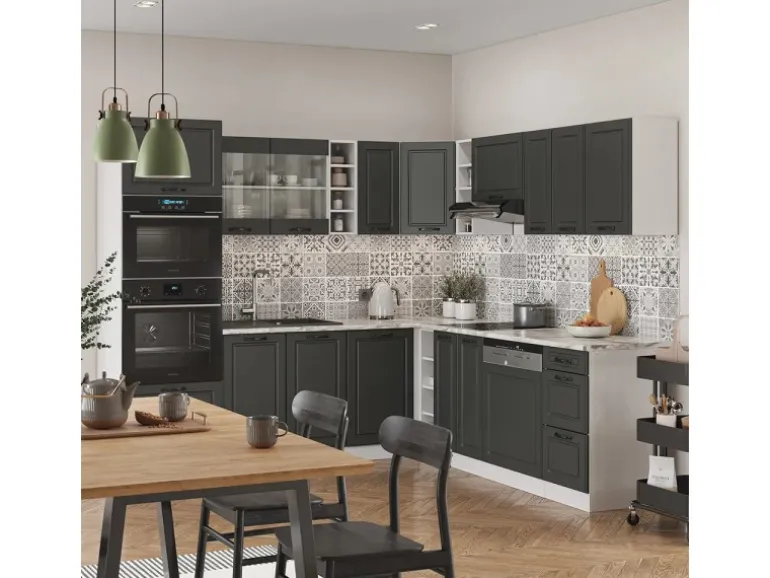 Die Küche in L-Form bietet zusätzliche Module und ein umstellbares Design nach Belieben