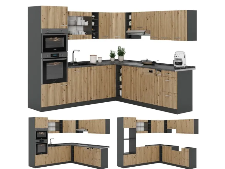 Die Küche in L-Form bietet zusätzliche Module und ein umstellbares Design nach Belieben
