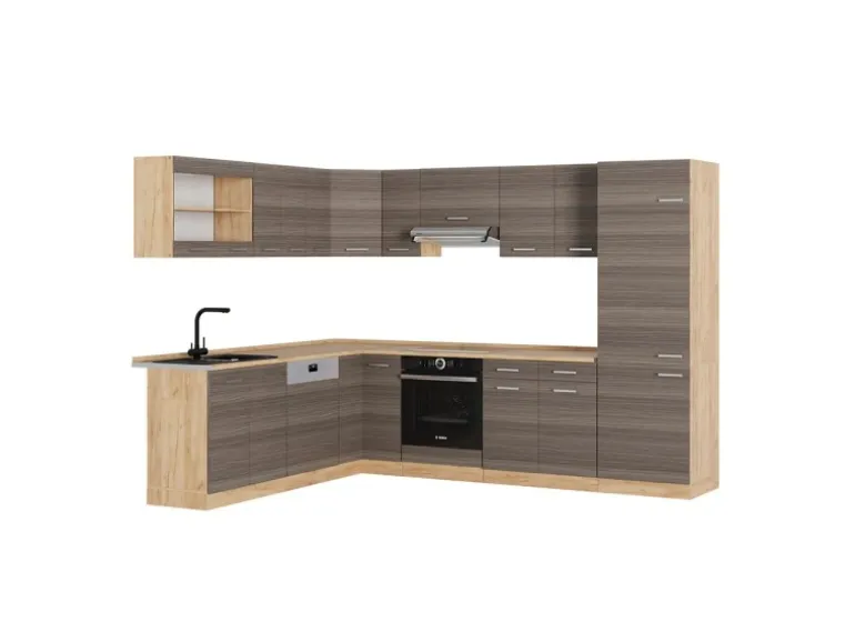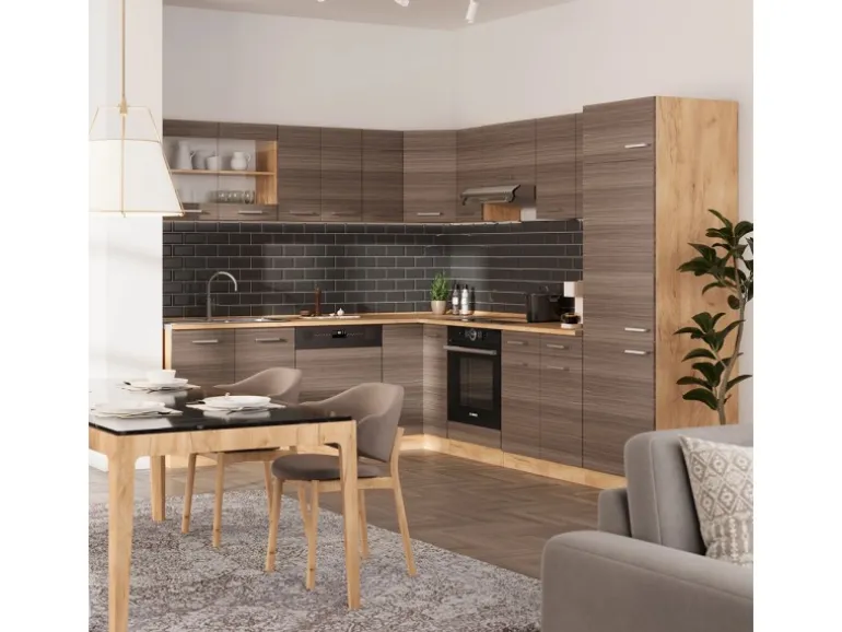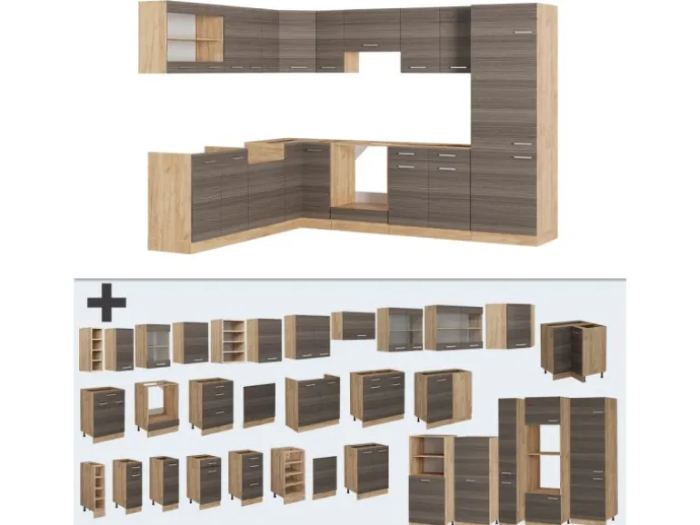 Die Küche in L-Form bietet zusätzliche Module und ein umstellbares Design nach Belieben